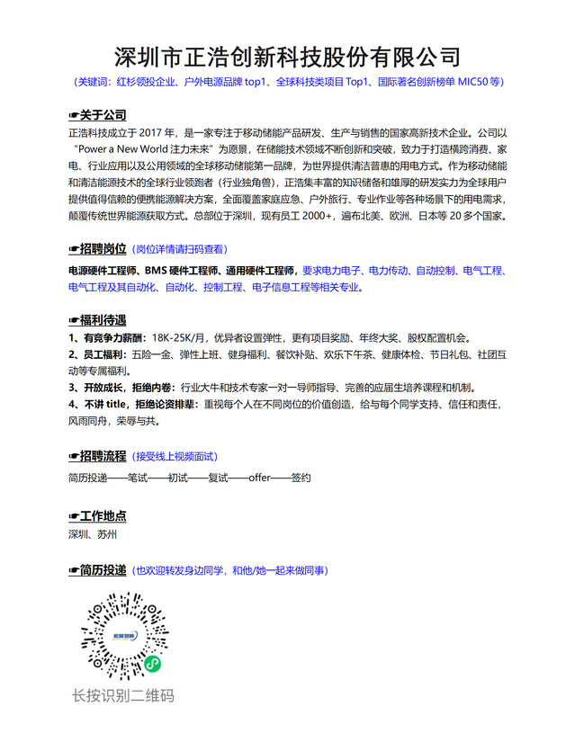 深圳市正浩创新科技股份有限公司23届春招宣传申请